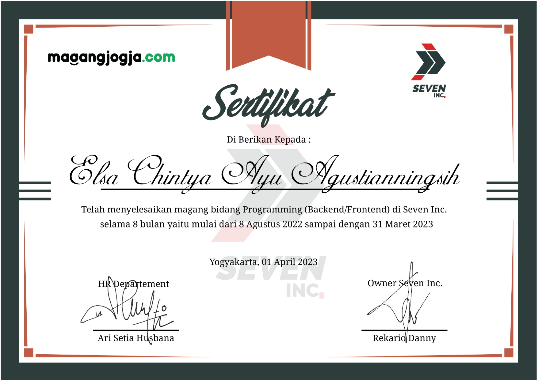 Selama melaksanakan kegiatan magang saat SMK, saya terlibat dalam pengembangan website sederhana seperti website e-commerce, point of sale dan landing page. Saya juga belajar tentang pengelolaan data, serta membantu proses digitalisasi sistem. Pengalaman ini meningkatkan kemampuan saya dalam problem solving, kerja tim, dan adaptasi di lingkungan kerja nyata. Pada saat Magang saya juga mengikuti kegiatan kantor seperti outing dan juga workshop untuk meningkatkan pengetahuan, skill, dan juga ilmu didunia kerja yang sangat penting dan wajib untuk dikembangkan serta di implementasikan.
